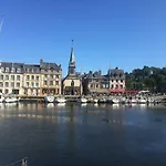 都市の景色を見渡すベッドルーム1室のオンフルールLa Parenthese Du Capucinアパートメントは、オンフルールのオンフルールから歩いて5分以内です。